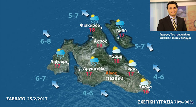 Χωρίς ιδιαίτερα προβλήματα σε στεριά και Θάλασσα θα κυλίσει το εορταστικό τριήμερο της αποκριάς.Ιδιαιτέρως η παρέλαση του Καρναβάλου και στο Αργοστόλι και στο Ληξούρι την Κυριακή πέρα από κάποιες ψιχάλες οι οποίες θα είναι σποραδικές και σύντομες δεν θα επηρεάσουν τις εκδηλώσεις.Το πέταγμα του χαρταετού θα γίνει με πολύ καλό καιρό ενώ οι θερμοκρασιακές τιμές στο νησί και τις τρείς ημέρες θα είναι πολύ καλές.Οι άνεμοι θα πνέουν από Ν/Α διευθύνσεις και δεν θα δημιουργήσουν κανένα πρόβλημα στα επιβατικά πλοία ωστόσο το Σάββατο θα φτάσουν τα 8 μποφόρ στα δυτικά του νησιού.Στα αξιοσημείωτα του καιρού θα είναι η Σαχαριανή σκόνη η οποία θα αιωρείται στην ατμόσφαιρα.